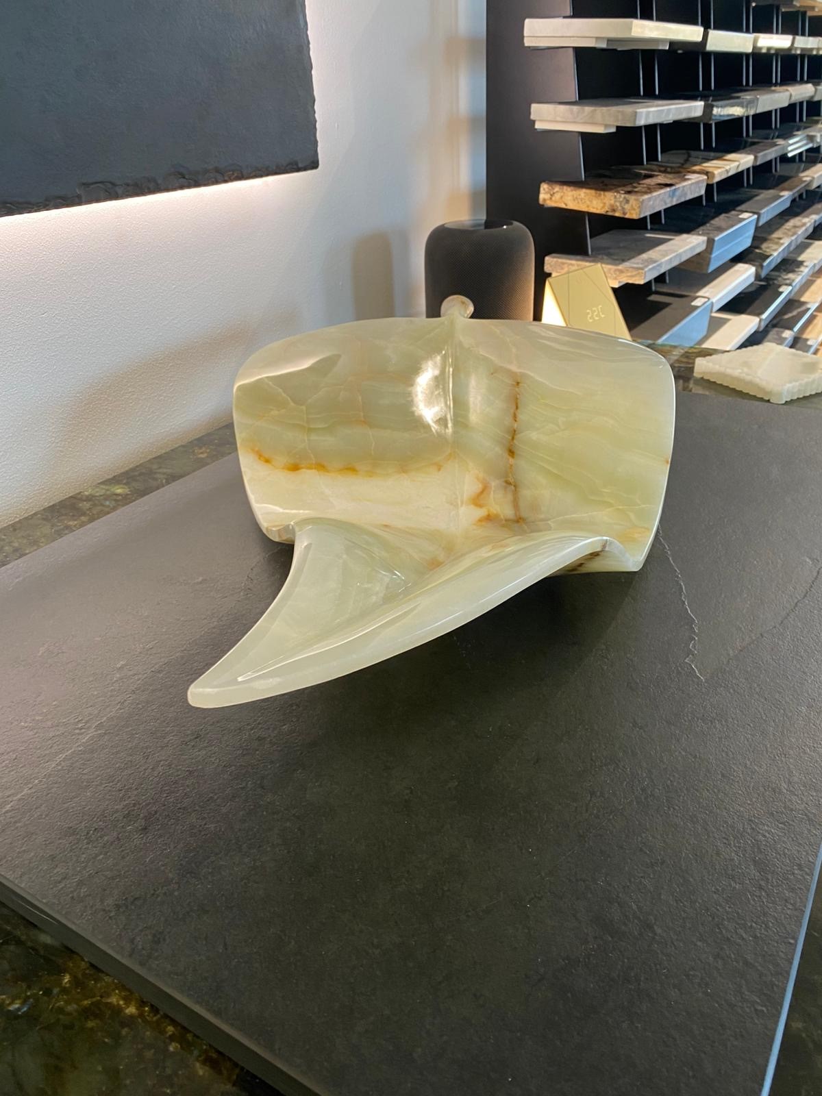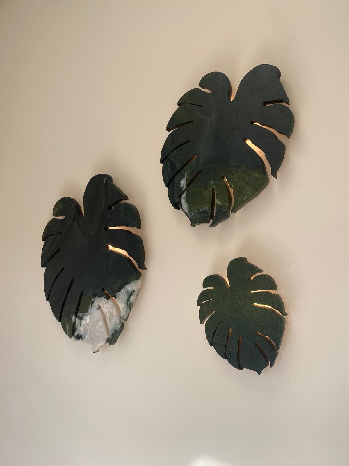 Liście, symbol wzrostu i odnowy, w pracowni Hoder nabierają całkowicie nowego wymiaru, przenosząc kształty natury w świat kamienia. Onyks, dzięki swojej przezierności, idealnie oddaje delikatność roślinnych form. Pod wpływem światła liście wyglądają jak żywe – struktura kamienia przypomina unerwienie, a nieregularne pasma barw tworzą efekt, którego nie da się pomylić z żadnym innym.