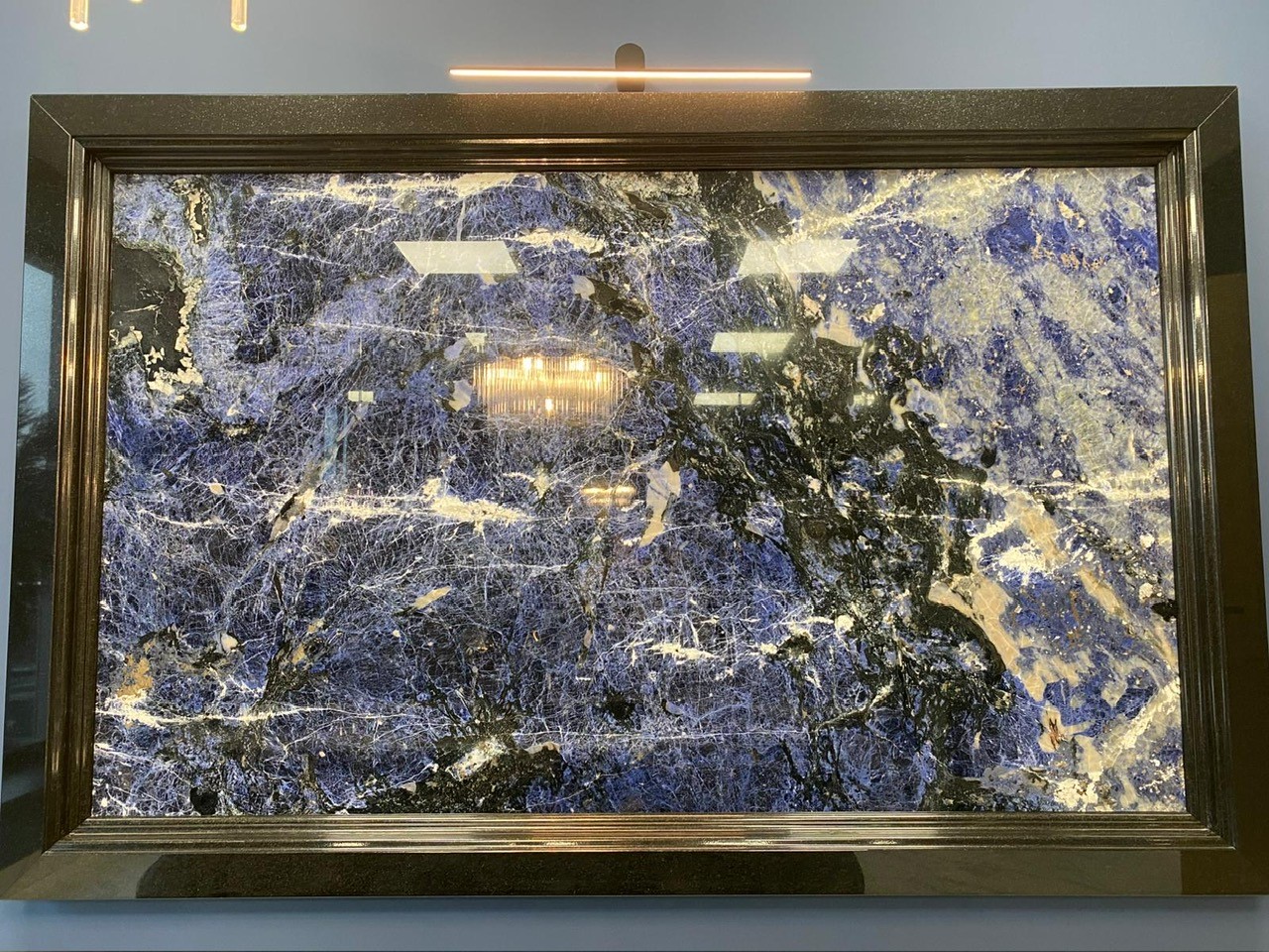 Podczas współpracy z architektami, często podkreślamy, że ten kamień naturalny najlepiej prezentuje się w otoczeniu prostych, minimalistycznych form. Szklane balustrady, stalowe detale, biel czy grafit sprawiają, że obrazy z sodalitu grają „pierwsze skrzypce”. Nasi klienci często decydują się na tego typu dekoracje do stref wellness, recepcji czy prywatnych gabinetów, gdzie każdy dzień zaczyna się i kończy spotkaniem z naturą zamkniętą w kamieniu.