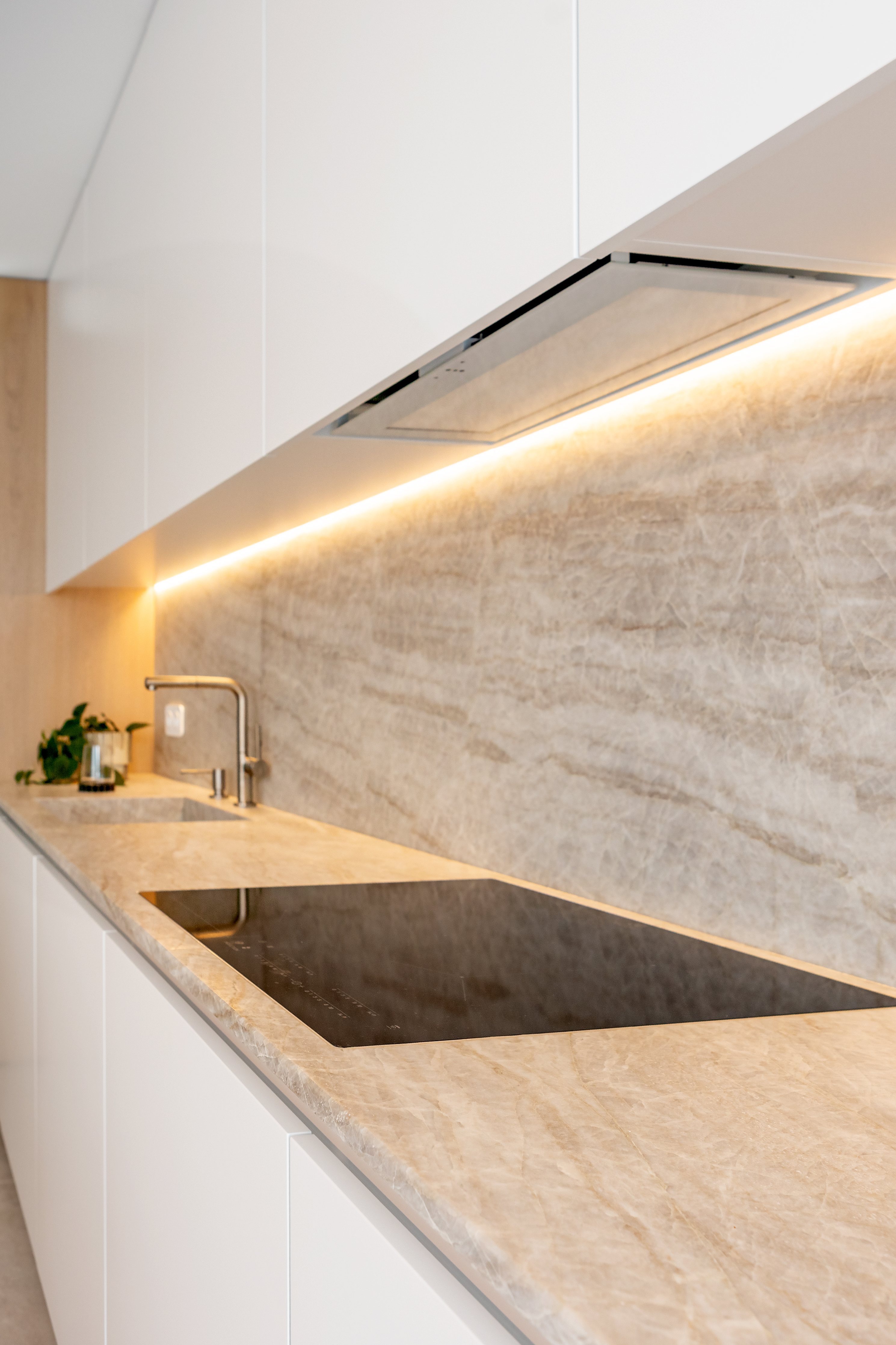 Porównując kamień naturalny i konglomerat w Hoder, szybko dostrzegamy, że każdy z nich reprezentuje inne wartości. Kamień naturalny to emocja, unikalność i autentyczność. Każda płyta jest inna, co daje wnętrzu niepowtarzalny charakter. Konglomerat z kolei to harmonia, kontrola i przewidywalność. Cechy szczególnie cenione w minimalistycznych, spójnych projektach.