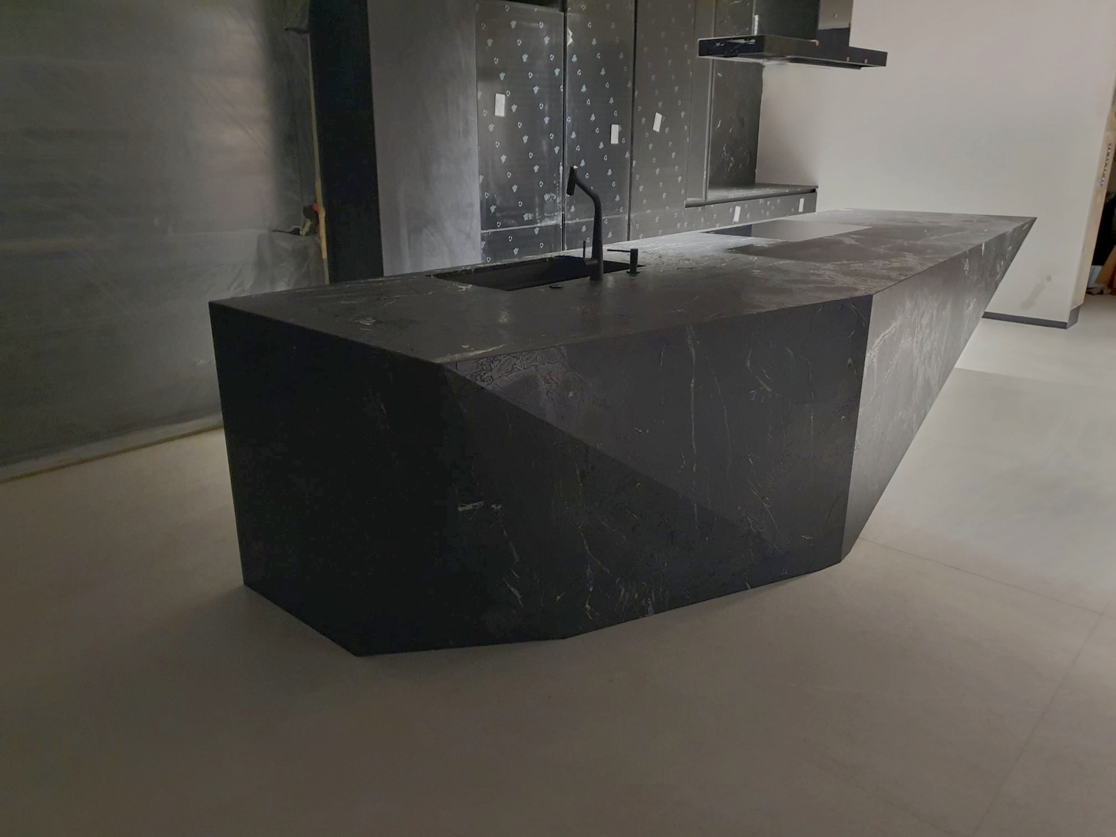 Wyspa kuchenna HODER Solid idealnie wpisuje się we współczesne trendy wielofunkcyjnych kuchni o eleganckich, pełnych kształtach. Łączy technikę z naturalnym pięknem kamieni, oferując nowe spojrzenie na blaty kuchenne.